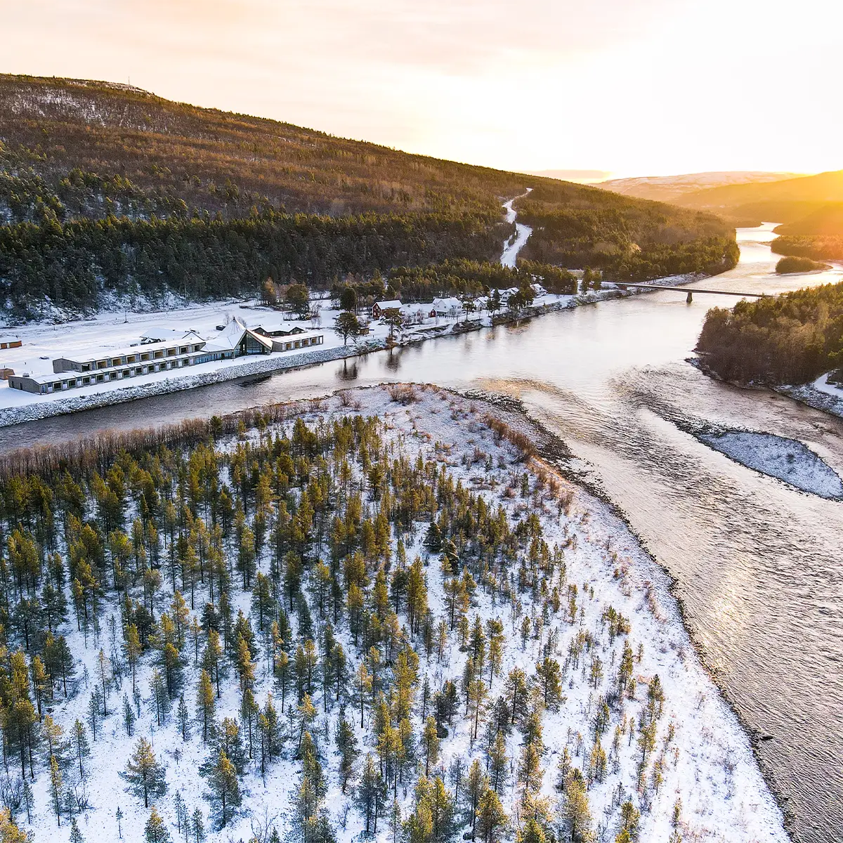 Am stillen Ufer des Altaelva, umgeben von unberührter Wildnis, liegt die Sorrisniva Arctic Wilderness Lodge - ein Ort, an dem Natur und Luxus eins werden.