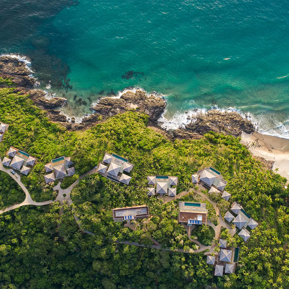 Die lichtdurchfluteten Suiten und Villen eröffnen spektakuläre Ausblicke auf Meer und Natur. Ein Infinity-Pool mit Ozeanblick, Yoga im Grünen und individuell organisierte Erlebnisse wie Surfen, Dschungel- oder Mangroven-Touren lassen Gäste tief in die Magie Itacarés eintauchen. Traditionelle Massagen sorgen für vollkommene Entspannung.