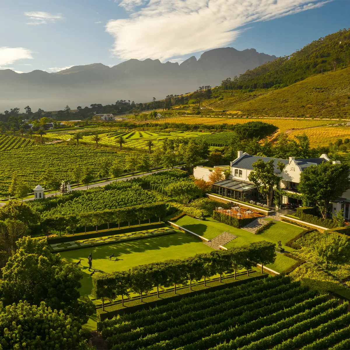 Nach Ihrer Safari führt die Reise in die idyllischen Winelands Südafrikas. Franschhoek begeistert mit französischem Flair, historischen Weingütern und erstklassigen Restaurants, eingebettet in ein traumhaftes Berg- und Rebenpanorama. Sie wohnen in den luxuriösen Leeu Estates und entdecken bei individuell gestalteten Ausflügen die Region, verkosten ausgewählte Weine und genießen kulinarische Höhepunkte. Zwei entspannte Nächte laden ein, die Schönheit und Genusskultur des Kap-Weinlands in aller Ruhe zu erleben. Damit endet Ihre unvergessliche Südafrika-Reise.